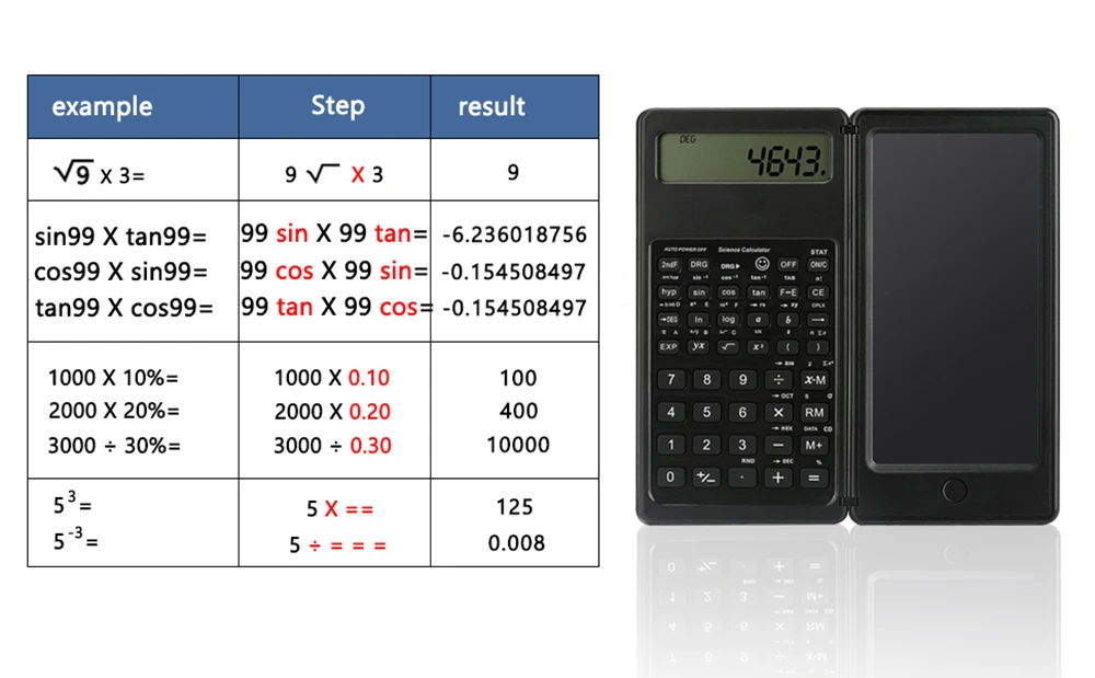 【Easy and portable】pocket calculator has a foldable design and weighs only 0.26 pounds, making it easy to put in a bag, pocket or purse. It is very suitable for work business, engineering calculation, accounting calculation, student physics calculation, home use, etc.