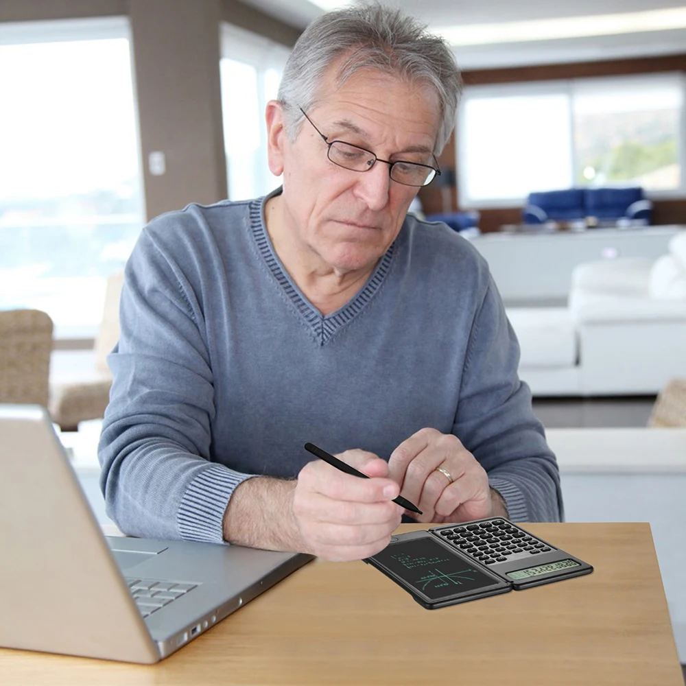 2-In-1 Foldable Scientific Calculator & 6 Inch Writing Tablet 10 Digit LCD Display for College Office Student Teacher Accountant